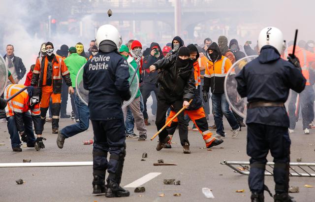 Violenti scontri a Bruxelles tra le forze di polizia e un corteo di manifestanti contro l’austerità. Gruppi di teppisti respinti con cannoni ad acqua. Chiuse due stazioni della metro per ragioni di sicurezzaPer sedare gli animi la polizia ha dovuto fare ricorso a lacrimogeni e cannoni ad acqua e solo dopo vari tentativi é stato raggiunto l’obiettivo di disperdere i manifestanti. Una decina di teppisti a volto coperto ha attaccato la polizia durante la manifestazione alla Gare du Midi a Bruxelles, con immediato lancio di petardi, di pietre, di bottiglie. Le forze dell’ordine hanno risposto con cariche e usando un cannone ad acqua e spray al peperoncino. Imponente il contingente di poliziotti impiegati nel corso della manifestazione, a fronte della tensione che nelle ultime settimane interessa il Belgio e Bruxelles in particolare. Otto persone e due agenti di polizia sono rimasti feriti negli scontri al corteo alla stazione di Midi di Bruxelles. A causa degli scontri la polizia ha deciso di chiudere le stazioni della metro Porte de Hal e Lemonnier per ragioni di sicurezza. Sono stati chiusi anche il tunnel della Porte de Hal e del boulevard du Midi nei due sensi. Cresce la preoccupazione nella capitale belga, crocevia di tensioni sociali, politiche ed economiche e luogo di recenti attentati terroristici.