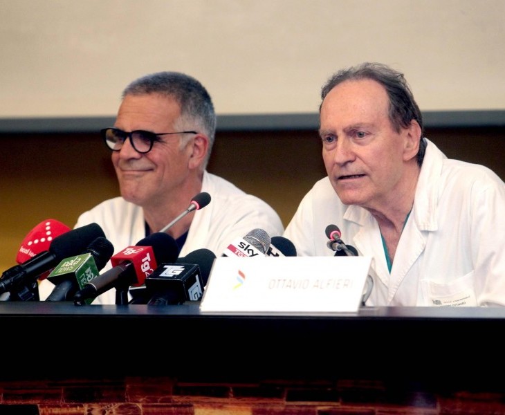 ‘E’ lucido e in ottime condizioni’ Queste le parole dei medici sulle condizioni di Silvio Berlusconi, il giorno dopo l’operazione. Sono parole confortanti. L’ex premier sta bene, dice il cardiochirurgo Ottavio Alfieri, mentre Alberto Zangrillo, medico personale del Cav, riferisce che questa mattina appena è stato liberato dal vincolo della assistenza respiratoria, si è venuto a manifestare immediatamente il Silvio Berlusconi di sempre. “Dopo 30 secondi era pronto a farmi una battuta: un complimento per l’assistenza ricevuta durante la notte da una delle mie infermiere della terapia intensiva, Cristina, alla quale ha dato una alternativa di lavoro a Telecinco”. Domani mattina Berlusconi verrà trasferito dal reparto di terapia intensiva e potrà ricominciare a camminare e “progressivamente riacquisterà tutte le sue libertà”. Spiega Alfieri: “Dal punto di vista del cuore – credo che una volta eseguito questo intervento, avendo eliminato quello che rappresenta il peso emodinamico della anomalia – siccome è ancora in buone condizioni, non penso che ci siano delle restrizioni particolari alla attività di una persona. Certamente va tenuto conto dell’età e di altre cose ma non mi sentirei di dire: “no, no può fare una campagna elettorale o politica”. Questa è cosa che deciderà lui e nessuno potrà cambiare molto la sua decisione”. “I tempi che ci aspettiamo per la riabilitazione sono quelli standard per questi tipi di cose: una degenza di 5-6 giorni in ospedale e dopo di che nella struttura riabilitativa che in questo caso può essere il nostro stesso ospedale. La riabilitazione dura una quindicina di giorni, 10-15 giorni, salvo complicanze. Le nostre previsioni sono fino ai primi di luglio”, dice ancora il cardiochirurgo.
