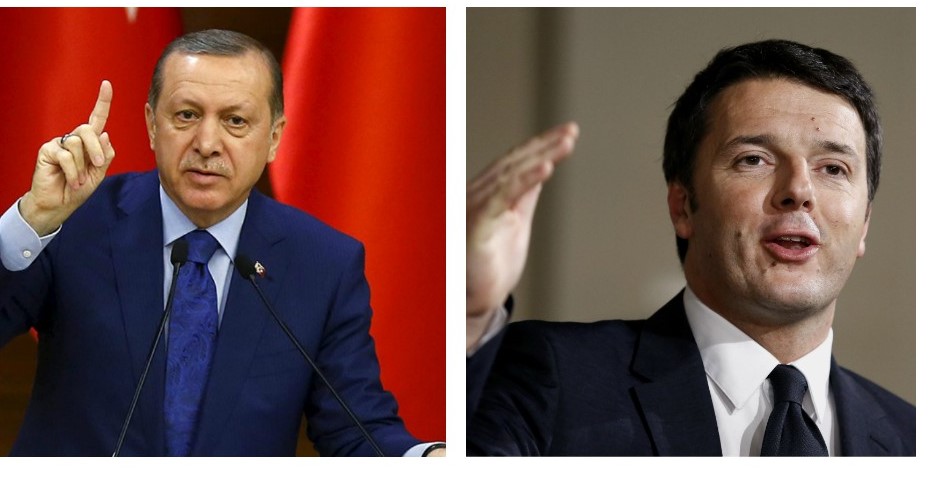 “In Italia c’è una magistratura autonoma e indipendente che agisce secondo le leggi e che combatte tutte le forme di illegalità. I giudici rispondono alla Costituzione italiana e non al Presidente turco. Chiamiamo questo sistema “Stato di diritto” e ne siamo orgogliosi”. Così il premier Matteo Renzi replica alle affermazioni di Recep Tayyip Erdogan. “La vicenda dell’indagine su mio figlio a Bologna potrebbe mettere in difficoltà le nostre relazioni con l’Italia, che dovrebbe occuparsi piuttosto della mafia”. Lo ha detto il presidente turco Recep Tayyip Erdogan, in un’intervista a Rai News 24. La Mogherini non avrebbe dovuto parlare da fuori, ha aggiunto il leader turco attaccando: “Mogherini prima di tutto saresti dovuta venire in Turchia!”. E poi: “Se viene bombardato il Parlamento italiano che succede. La Mogherni, che é italiana, come reagisce: direbbe che hanno fatto bene a bombardarlo? Di essere preoccupata dai processi che seguirebbero?”. Erdogan ha poi ribadito che se l’Ue non concederà la liberalizzazione dei visti per i cittadini turchi, Ankara non rispetterà più l’accordo di marzo sui migranti.