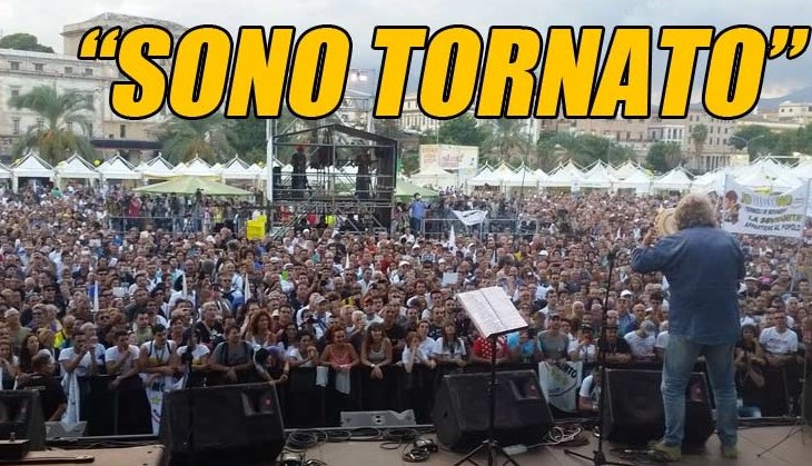 “Se devo fare il capo politico lo farò. Io ci sono a tempo pieno. Voglio vincere le elezioni e dimostrare che possiamo governare Torino, Roma, Livorno…anche con gli sbagli che abbiamo fatto”, Così ieri Beppe Grillo dal palco di Palermo nella prima giornata del raduno nazionale Italia 5 Stelle, che ha aperto la nuova fase del movimento pentastellato scegliendo la Sicilia dove l’anno prossimo si terranno le amministrative a Palermo e le elezioni regionali. “Ebbene sì, sono rientrato – ha detto il leader M5S – Avevo fatto un piccolo passo indietro ma sì, sono rientrato. Gianroberto Casaleggio ci manca ma io sono rientrato”. Al raduno presenti migliaia di attivisti e i parlamentari nazionali. Roberto Fico, presidente della commissione Vigilanza Rai, nel commentare la crisi vissuta dal Movimento a Roma ha detto: “Non ci si puo’ nascondere dietro a un dito, ci sono state difficolta’, ma che si possono trasformare in grandi opportunita’, se metabolizzate, sedimentate e comprese bene per andare avanti. Speriamo che l’assessore al Bilancio di Roma arrivi subito, che sia una persona capace per migliorare la vita dei cittadini romani e attuare il nostro programma. L’ipotesi di togliere il simbolo alla Raggi non c’e’ mai stata”. E sul futuro politico: “Il prossimo anno ci presenteremo in Sicilia e saremo la prima regione a 5 Stelle in Italia”, ha concluso Fico.