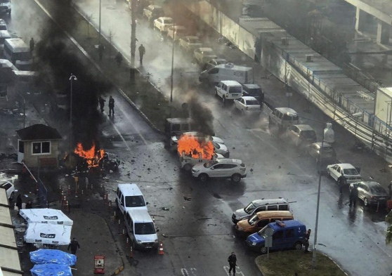 La Turchia è stata colpita da un nuovo attentato che ieri ha provocato due morti nella città costiera di Smirne, cinque giorni dopo la strage nella discoteca di Istanbul il cui autore è ancora in fuga. L’attacco perpetrato con un’autobomba ha preso di mira un tribunale di Smirne (ovest) e ha ucciso un poliziotto e un dipendente del tribunale, secondo i media turchi. Due “terroristi” sono stati uccisi dalla polizia dopo l’esplosione, secondo la stessa fonte. Una decina di persone sono rimaste ferite nell’attacco, ha indicato un responsabile locale. Secondo il prefetto della città, le autorità sospettano che il Partito dei Lavoratori del Kurdistan (Pkk) sia all’origine dell’attacco. L’attentato è l’ultimo di una serie di attacchi che hanno insanguinato la Turchia nel 2016 e che sono stati imputati sia ai jihadisti dello Stato islamico (Isis) sia rivendicati dai ribelli curdi. Intanto le autorità turche ricercano attivamente l’autore del massacro di capodanno a Istanbul che è riuscito a fuggire dopo aver ucciso 39 persone e ferite oltre decine durante la notte di Capodanno in una discoteca, il Reina. Questa strage è stata rivendicata dall’Isis.