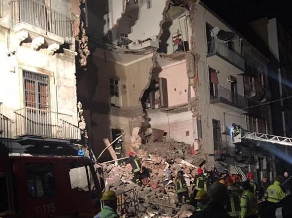 Un’esplosione nel cuore della notte ha distrutto una palazzina di tre piani a Catania. Il bilancio è di una donna morta e di quattro feriti. Una bimba di dieci mesi e un uomo sono ricoverati in gravi condizioni. Le cause sono ancora da accertare, ma secondo i vigili del fuoco, con ogni probabilità lo scoppio è avvenuto per una fuga di gas, alle 2.20. La Procura di Catania ha aperto un fascicolo per disastro colposo. I vigili del fuoco, i carabinieri, la polizia e i tecnici del Comune al lavoro tra le macerie anche con una ruspa e con l’aiuto dei cani molecolari. Ma non risultano altre persone coinvolte. La vittima è una donna di 85 anni, Agata Strano, che viveva da sola in un appartamento al secondo piano dello stabile nel cuore della città etnea. Evacuati gli edifici nei dintorni. Alcuni hanno subito danni alle finestre. “Sicuramente è una bombola che ha fatto saltare tutto – ha detto il sindaco della città, Enzo Bianco, a Sky tg24 – Qualcuno parla di odore di gas già da prima, di questo se ne occuperà la magistratura. I soccorsi sono scattati immediatamente e devo per questo ringraziare i vigili del fuoco e non solo. Una persona è stata portata in elicottero e ricoverata all’ospedale Civico di Palermo con ustioni gravi, magari si trovava molto vicino. Sembra che non ci siano altre vittime”. (immagine webCorriere)