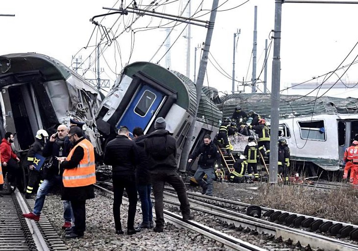 Un treno delle ferrovie Trenord è deragliato tra Pioltello e Segrate, alle porte di Milano. Il convoglio era partito da Cremona e diretto a Milano Porta Garibaldi. Sul luogo dell’incidente sono all’opera i Vigili del fuoco. Il bilancio provvisorio di quanto accaduto è di tre morti e cinque feriti gravi, un centinaio i feriti lievi. Le operazioni per estrarre i feriti che erano rimasti incastrati nelle lamiere sono terminate. Un cedimento strutturale di circa 20 centimetri di binario, circa due chilometri più indietro rispetto al luogo del deragliamento del treno regionale Trenod, è stato accertato dai tecnici di Rete Ferroviaria Italia. Lo si apprende da fonti della stessa Rfi. Attraverso indagini successive si dovrà stabilire se il cedimento del binario sia stato causa o effetto del deragliamento del treno. I tecnici hanno escluso qualsiasi malfunzionamento degli scambi della stazione di Pioltello. Al contrario, è risultato che i sistemi di sicurezza della rete hanno funzionato: i sensori posizionati sugli scambi hanno rilevato il passaggio anomalo di alcune vetture del treno ed hanno disposto a “via impedita” tutti i sistemi di segnalamento, bloccando di fatto la circolazione nell’area. Sono state tre le vetture del treno regionale 10452 Cremona – Treviglio – Milano Porta Garibaldi uscite dai binari. Il treno – secondo una prima ricostruzione di Rete Ferroviaria Italiana, che gestisce l’infrastruttura – ha percorso con alcune ruote fuori dalle rotaie circa due chilometri prima che una delle tre vetture impattasse un palo della trazione elettrica e si accartocciasse. A quel punto il treno si è scomposto. La Procura di Milano ha aperto un’inchiesta con l’ipotesi di reato di disastro ferroviario colposo sull’incidente.